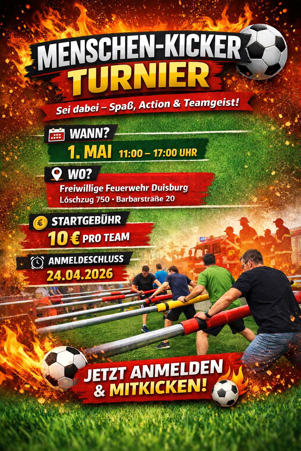 Sozusagen zum Aufwärmen findet am 01.05. zwischen 11 und 17 Uhr darüber hinaus das traditionelle Maifest des Löschzuges 750 samt Menschenkicker-Turnier statt. In diesem Jahr ist es etwas kürzer, damit wir einen nahtlosen Übergang zur Jubiläumsparty des TK Rheinklang Mündelheim haben.
