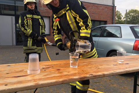 Aufgrund des hochsommerlichen Wetters entschloss sich der Löschzug dazu, in dieser Woche nur eine kleine Übung durchzuführen. Dennoch wurde trotz der hohen Temperaturen Wert darauf gelegt, das Geschick mit schweren Geräten und voller Montur zu trainieren. So wurde mit dem hydraulischen Rettungsgerät gearbeitet und dabei mittels Hydraulikspreizer Wasserbecher umgestapelt. Hierzu ein paar Eindrücke der gestrigen Übung: