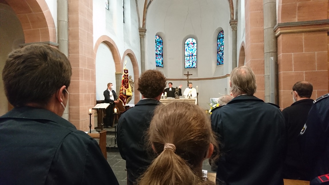 Am vergangenen Sonntag fand in der Mündelheimer Pfarrkirche St. Dionysius mit der Floriansmesse ein ökumenischer Gottesdienst anlässlich des 115-jährigen Jubiläums des Löschzuges 750 statt. Gedacht wurde hierbei dem Schutzpatron der Feuerwehrangehörigen, dem heiligen St. Florian, dessen Gedenktag am heutigen 4. Mai ist. Gehalten wurde der Gottesdienst von Diakon Thomas Löv und Pfarrer Bodo Kaiser.