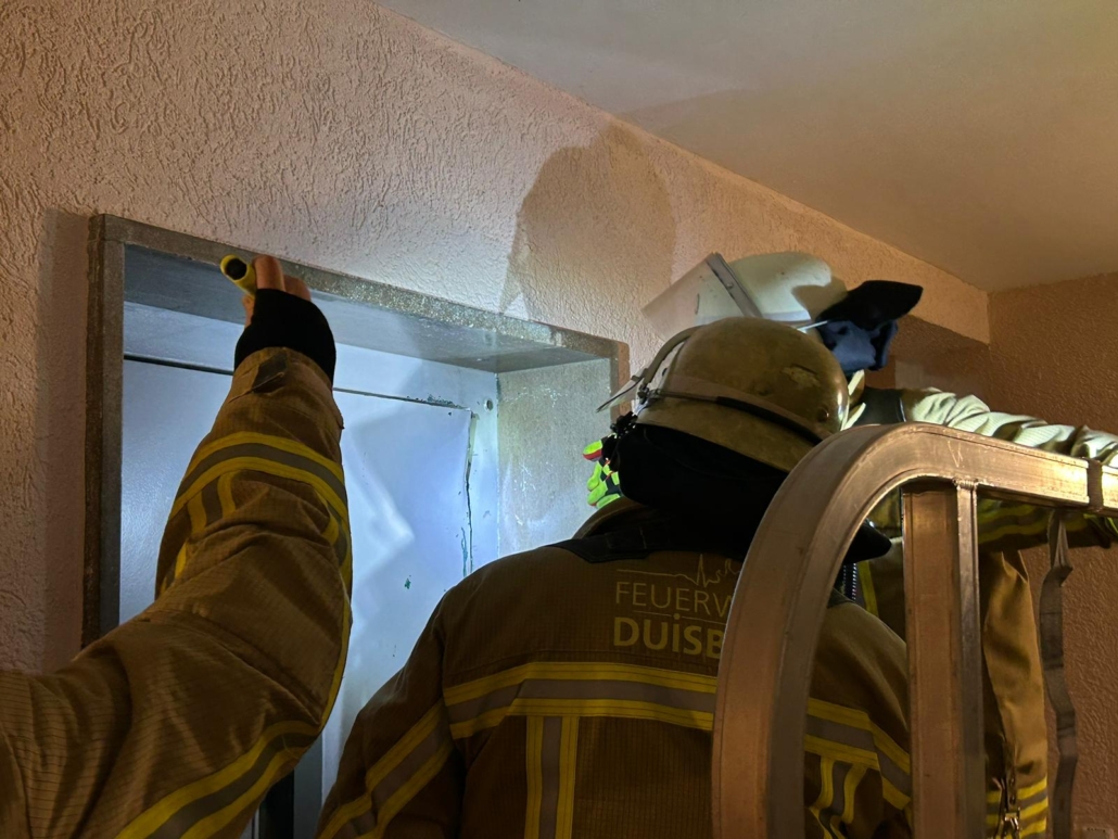Am Montagabend wurde der Löschzug 750 zu einem weiteren Einsatz gerufen, hierbei galt es eine Person aus einem verschlossenen Aufzug zu befreien. Zu Beginn versuchten die Einsatzkräften den Aufzug mit einem Notentriegelungsschlüssel zu öffnen. Allerdings erwies sich die Aufzugtüre als sehr hartnäckig. Im weiteren Verlauf setzten die Kräfte des Löschzuges 750 daher zunächst Brechwerkzeug und später schweres technisches Gerät ein. So konnte die Aufzugtür schließlich geöffnet werden, sodass die Person unversehrt nach fast zwei Stunden aus ihrer Zwangslage befreit werden konnte. Anschließend wurde die Aufzuganlage gegen ein weiteres Benutzen gesichert, ehe sie an den Betreiber übergeben wurde.