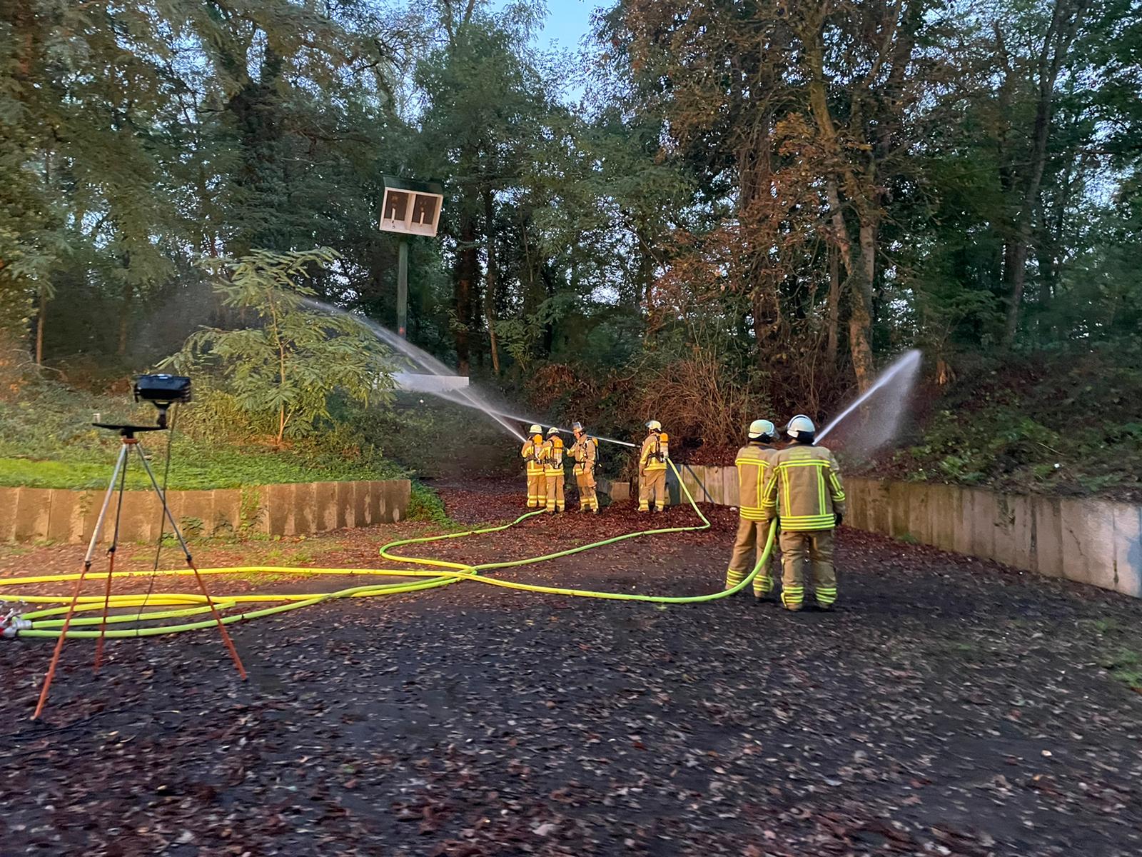 Um sich praxisnah mit dem Thema „Ausleuchten von Einsatzstellen“ zu befassen, wurde es in eine kleine Einsatzübung eingebettet. Angenommen wurde dabei der Brand einer Gartenlaube in einem Wald. So konnten gleichzeitig die Abläufe bei einem Brandereignis trainiert werden. Unter anderem musste aufgrund der Örtlichkeit die Wasserversorgung über eine lange Wegstrecke sichergestellt werden.