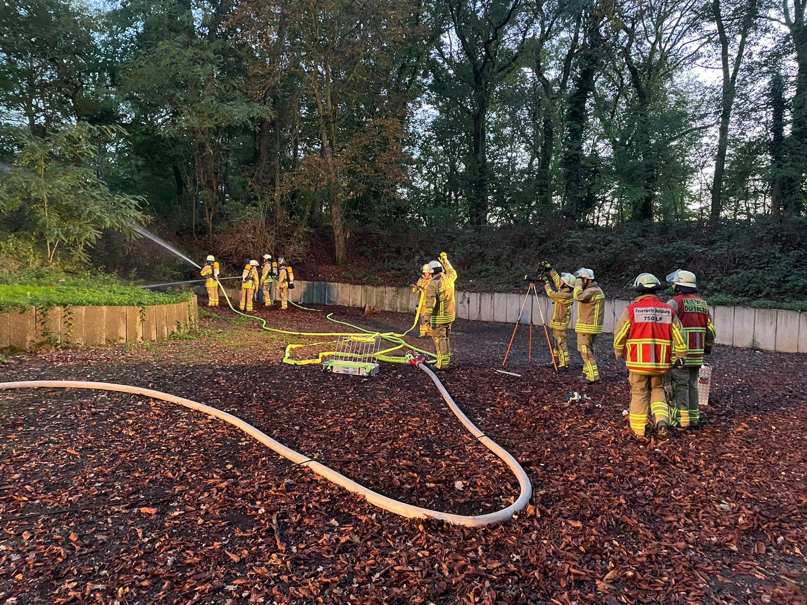 Für die Angehörigen des Löschzuges 750 standen gleich mehrere Übungsszenarien auf dem Plan, hierzu zählten der Brand in einer Kfz-Werkstatt oder der Brand in einer Doppelhaushälfte mit zwei vermissten Personen. Bei den Einsatzszenarien konnte das richtige Vorgehen bei der Brandbekämpfung trainiert werden, außerdem konnten die Feuerwehrleute die körperlichen Belastungen durch die hohen Temperaturen erleben.