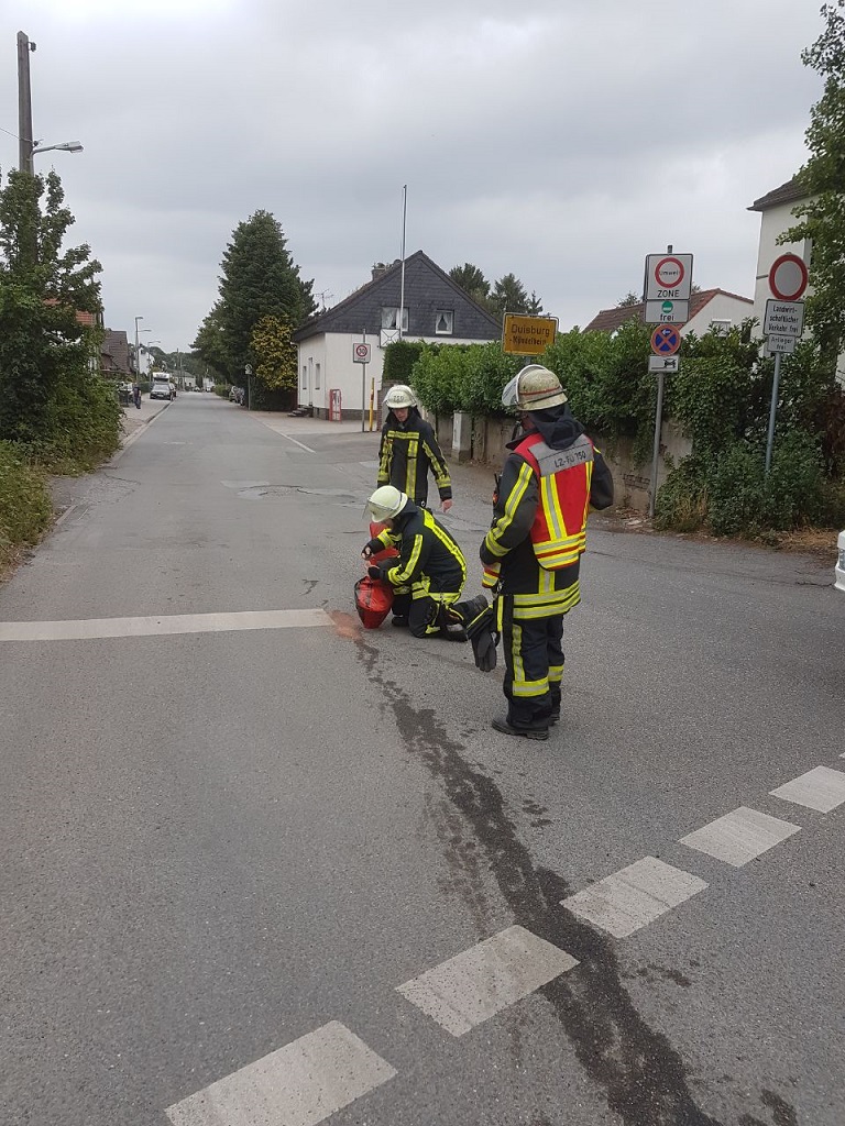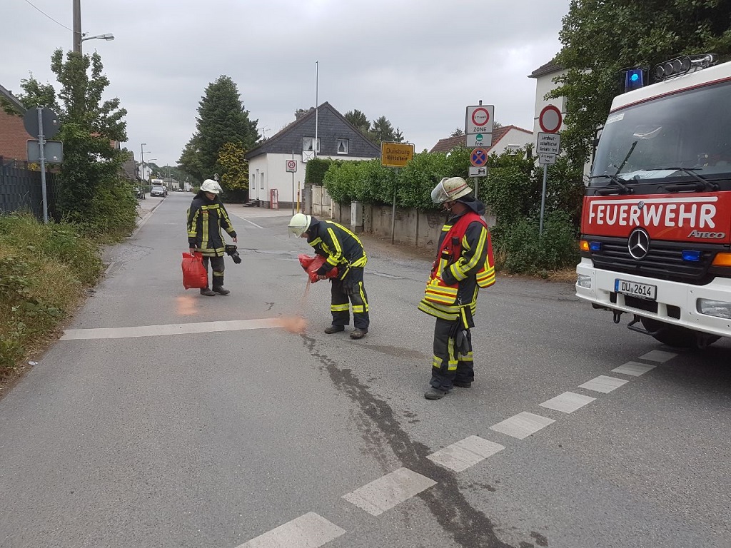 Der Löschzug 750 wurde eine Stunde nach dem letzten Einsatz erneut alarmiert. Diesmal wurde eine Ölspur in einem Kreuzungsbereich der örtlichen Bundesstraße gemeldet. Diese begann auf dem Seltenreich kurz vor der Einmündung in die Krefelder Straße und erstreckte sich in Fahrtrichtung Krefeld weiter auf einer Länge von rund 200 Metern. Durch die Feuerwehr wurde die Ölspur mit Bindemitteln abgestreut und so die Gefahrenstelle beseitigt.