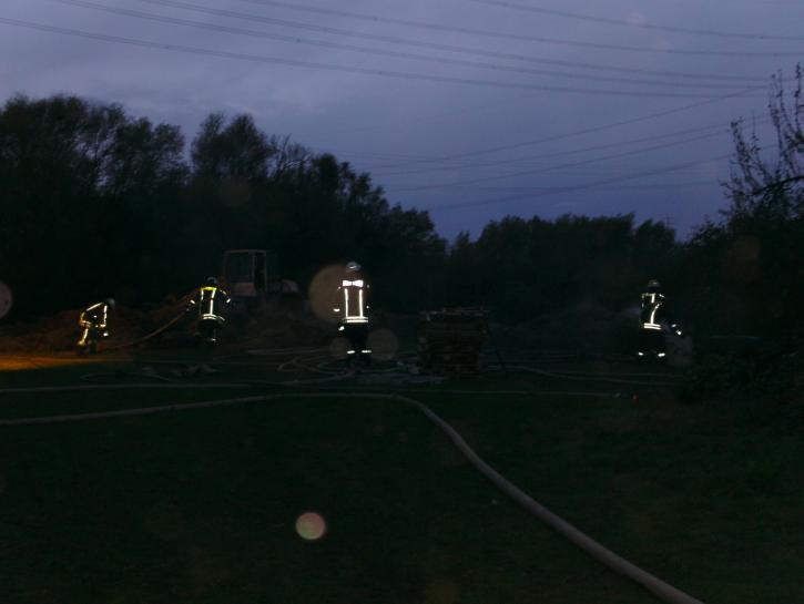 Die Feuerwehr wurde in den frühen Morgenstunden zu einem Feuer auf dem Gelände eines landwirtschaftlichen Betriebes am Holtumer Mühlenweg gerufen. Dort brannte ein größerer Komposthaufen, die Löscharbeiten gestalteten sich als aufwendig. So musste der Komposthaufen mit zwei Baggern auseinander gezogen werden, damit die einzelnen Glutnester abgelöscht werden konnten. Hierbei kamen zeitweise bis zu vier C-Rohre zum Einsatz.