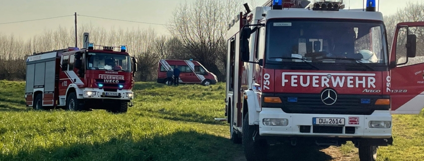 Am Freitagnachmittag rückte der Löschzug 750 zusammen mit weiteren Kräften der Feuerwehr Duisburg und der Polizei aufgrund einer im Rhein treibenden Person aus. Bei Eintreffen der Einsatzkräfte wurde eine leblose Person auf einem Buhnenkopf vorgefunden. Diese wurde mittels Schleifkorbtrage über ein Mehrzweckboot geborgen und ans Ufer gebracht. Beim Transport an Land leistete die Feuerwehr zudem Tragehilfe. Nach etwas mehr als einer Stunde konnte der Löschzug 750 wieder an seinen Standort einrücken.