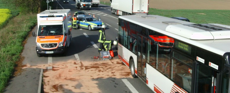 Am Freitagmorgen kam es auf der Bundesstraße 288 in Höhe der Deichbaustelle zu einem Auffahrunfall zwischen einem Linienbus und einem PKW, bei dem die Fahrerin des PKW leicht verletzt wurde. Infolge des Unfalls liefen größere Mengen Betriebsmittel aus, die von der Feuerwehr mit Bindemitteln abgestreut wurden. Des Weiteren wurde die Fahrzeugbatterie des PKW abgeklemmt.