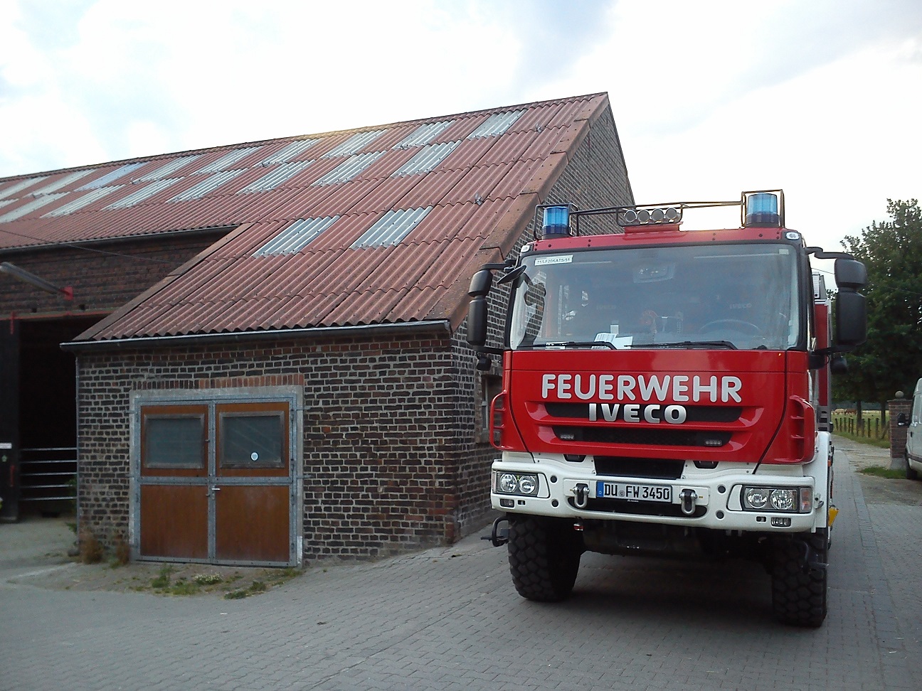 Der Löschzug 750 wurde am Donnerstagabend kurz vor Ende seines Dienstabends zu einer Rettung von Jungfalken nach Holtum gerufen. Diese saßen in einem großen Nistkasten, der in etwa sieben bis acht Metern Höhe in einer Scheune des Postenhofes angebracht war. Nachdem das Vatertier tot aufgefunden wurde, war die Nahrungsversorgung für die kleinen Vögel nicht mehr gewährleistet.