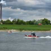 Am Nachmittag des Ostermontags rückten zahlreiche Einsatzkräfte zum Rhein aus, da dort eine vermeintlich im Wasser treibende Person gemeldet wurde. Der Fluss wurde zwischen Mündelheim und Uerdingen mit zwei Hubschraubern sowie mit mehreren Booten abgesucht. Auch entlang der Ufer wurden sowohl rechts- als auch linksrheinisch Einsatzkräfte zur Suche eingesetzt. Dem Löschzug 750 wurde dabei ein Abschnitt nördlich der Rheinbrücke zugeteilt. Nach rund 45 Minuten wurde die Personensuche erfolglos abgebrochen.
