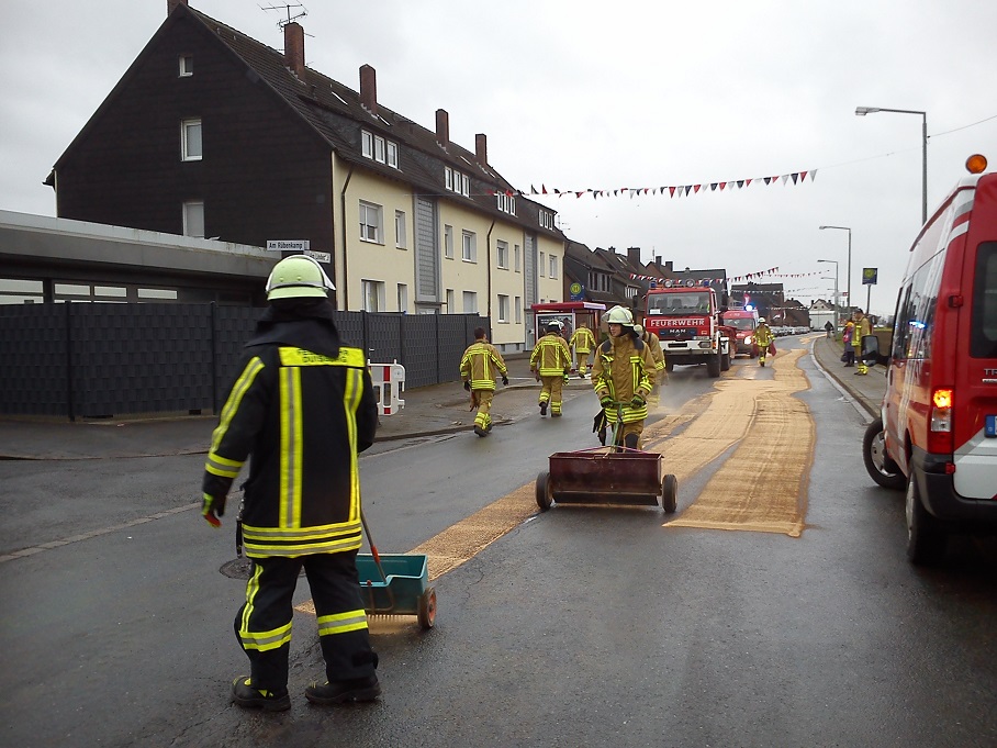 Gegen 14:45 Uhr wurden Einsatzkräfte des Löschzuges 750 gemeinsam mit weiteren Einheiten der Feuerwehr Duisburg zur Beseitigung einer längeren Ölspur alarmiert. Nach über zwei Stunden wurden die Maßnahmen der Feuerwehr abgeschlossen und die Einsatzstelle an die Wirtschaftsbetriebe übergeben. Daneben wurde der Rettungswagen im Verlauf des Tages zu mehreren medizinischen Notfällen gerufen.