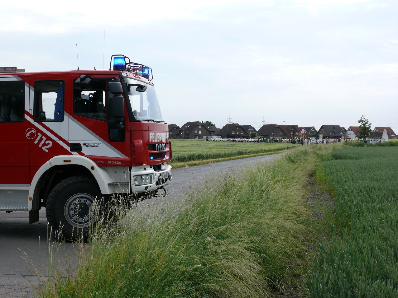 An Fronleichnam unterstützte der Löschzug 750 die Polizei bei der Absicherung der traditionellen Fronleichnamsprozession der Kirchengemeinden Mündelheim und Serm. In diesem Jahr fand die Prozession in Serm statt und verlief zunächst von der Herz Jesu-Kirche über innerörtliche Straßen zur Dionysius-Kapelle, die sich an der Mündelheim und Serm verbindenen Hauptstraße befindet. An dieser Stelle fand eine von zwei Andachten statt, ehe die Prozession weiter über die Dorfstraße zurück zur Kirche zog. Dort endete die Prozession mit einem gemütlichen Beisammensein, das von Gemeindemitgliedern organisiert wurde.