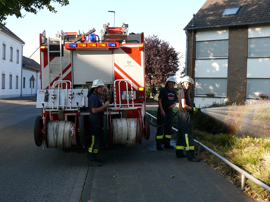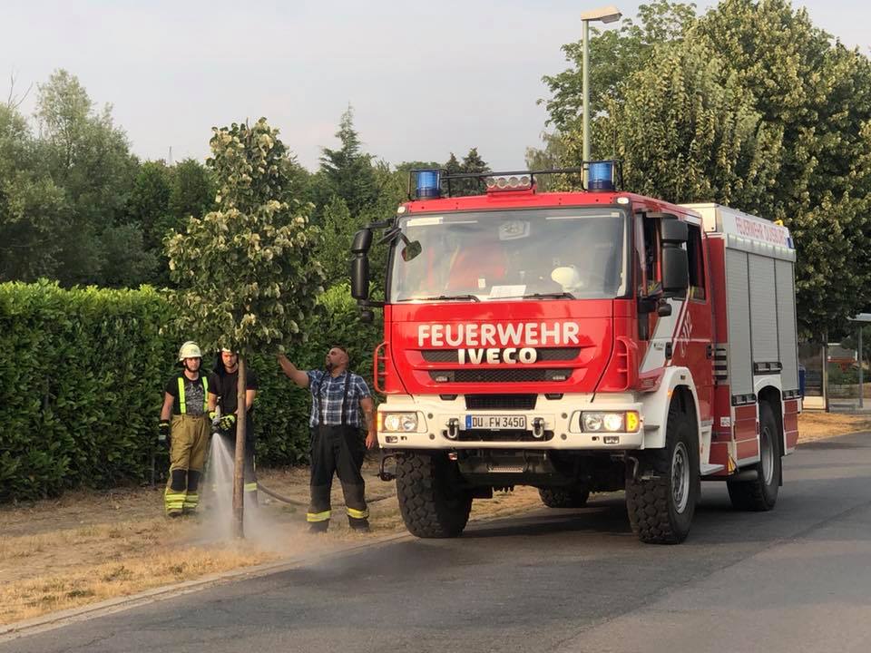 Bereits in den letzten Tagen ist der Löschzug der Bitte der Bevölkerung nachgekommen. Den gestrigen Übungsdienst nutzten einige Mitglieder und verbanden die wöchentliche Übung mit der Bewässerung von Jungbäumen. Einsatzorte waren das Kappellchen an der Sermer Straße sowie die Jungbaumreihe am Kasselle-Pitter-Platz.