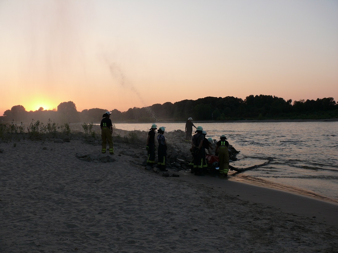Gerade im Hinblick auf die derzeitige Trockenheit war die Behandlung dieses Themas wichtig, da zum Wachbezirk des Löschzuges 750 unter anderem das mehrere hunderte Hektar große Rheinvorland gehört. Bei einem größeren Brand würde hier die Wasserentnahme aus dem Rhein erfolgen. Darüber hinaus kann die Tragkraftspritze bei der gegenwärtigen Witterung sehr gut dazu eingesetzt werden, um sauerstoffarme Teiche umzusetzen, womit etwa ein Fischsterben verhindert werden kann.