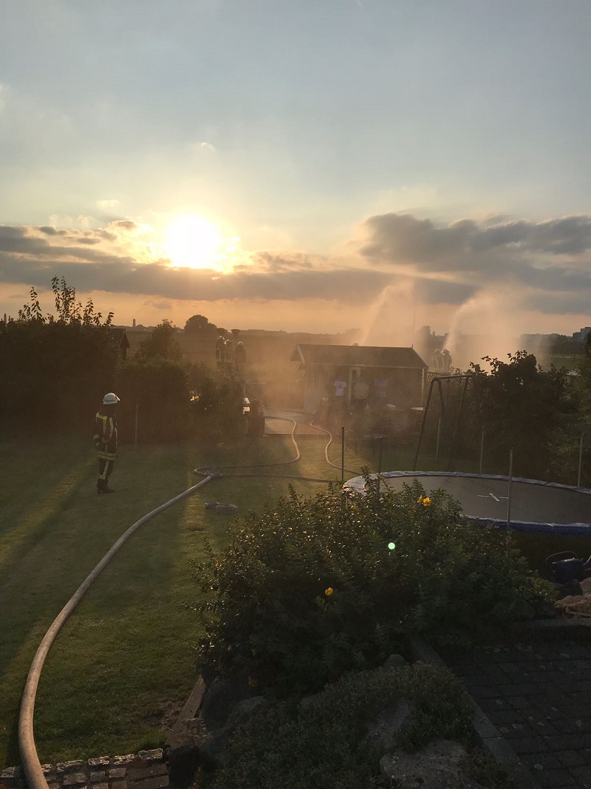 Bei der wöchentlichen Übung des Löschzuges 750 war am vergangenen Donnerstag die angenommene Lage eine in Vollbrand stehende Gartenlaube. Die Übungsleitung baute dabei eine kleine Herausforderung ein: Der Besatzung des erstanrückenden Hilfeleistungslöschgruppenfahrzeuges (HLF) wurde bewusst eine falsche Einsatzadresse genannt. Die Mannschaft des nachrückenden Löschgruppenfahrzeuges (LF), die wie üblich die Wasserversorgung herstellen sollte, erreichte stattdessen als erste Einheit die Einsatzstelle und musste plötzlich den Löschangriff einleiten. Das Ziel der Übung war es aufzuzeigen, dass sich Lagen sehr kurzfristig ändern können und dass dann schnelles Umdenken sowie Handeln notwendig sind.