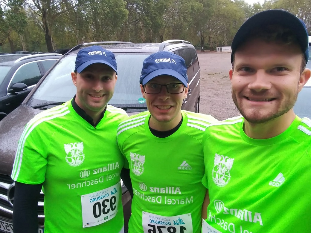 Doch die Sportgruppe hatte noch nicht genug: Gestern Abend nahm erstmals eine Mannschaft des Löschzuges 750 am Teamwettbewerb des Bunerts Lichterlaufes teil. Dieser Volkslauf findet jährlich im September im Sportpark Duisburg statt und dient gleichzeitig als Spendenlauf für die Beleuchtung an der Regattabahn. Rund um diese führte auch ein Großteil der Laufstrecke. Das Wetter spielte leider nicht mit, denn pünktlich zu Beginn der Veranstaltung setzte Regen ein…Doch die „Boys in Green“ ließen sich nicht davon abhalten und rannten förmlich um die Regattabahn. Am Ende schlossen sie bei 43 teilnehmenden Teams den Wettbewerb als hervorragender 8. ab!