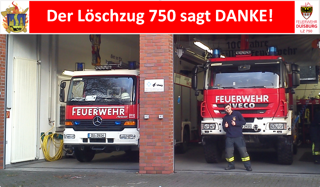 Allen anderen möchte der Löschzug 750 deshalb an dieser Stelle einmal DANKE sagen! Und zwar…