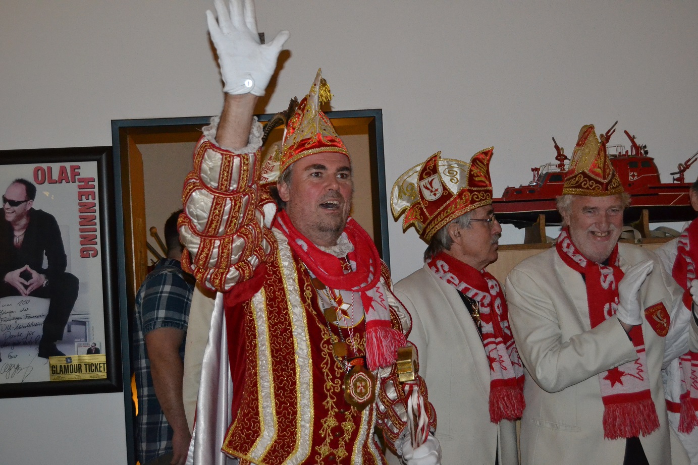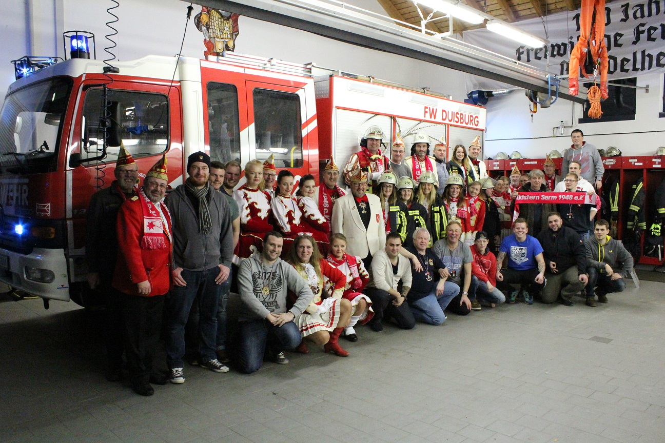 Am gestrigen Abend wurde beim Löschzug 750 endgültig die fünfte Jahreszeit eingeläutet: So machte die Karnevalsgesellschaft Südstern Serm im Rahmen ihrer traditionellen Prinzentour auch in diesem Jahr wieder Station am Gerätehaus an der Barberstraße. Zu den verschiedenen Programmpunkten zählten dabei unter anderem Laudatien, das obligatorische Gruppenfoto sowie eine musikalische Darbietung der Prinzencrew, mit welcher der gesamte Mündelheimer „Gürzenich“ zum Schunkeln gebracht wurde. 😉 Abgerundet wurde der gesellige Abend mit einem kleinen Buffet, welches einige Kameraden für die jecken Gäste organisierten.