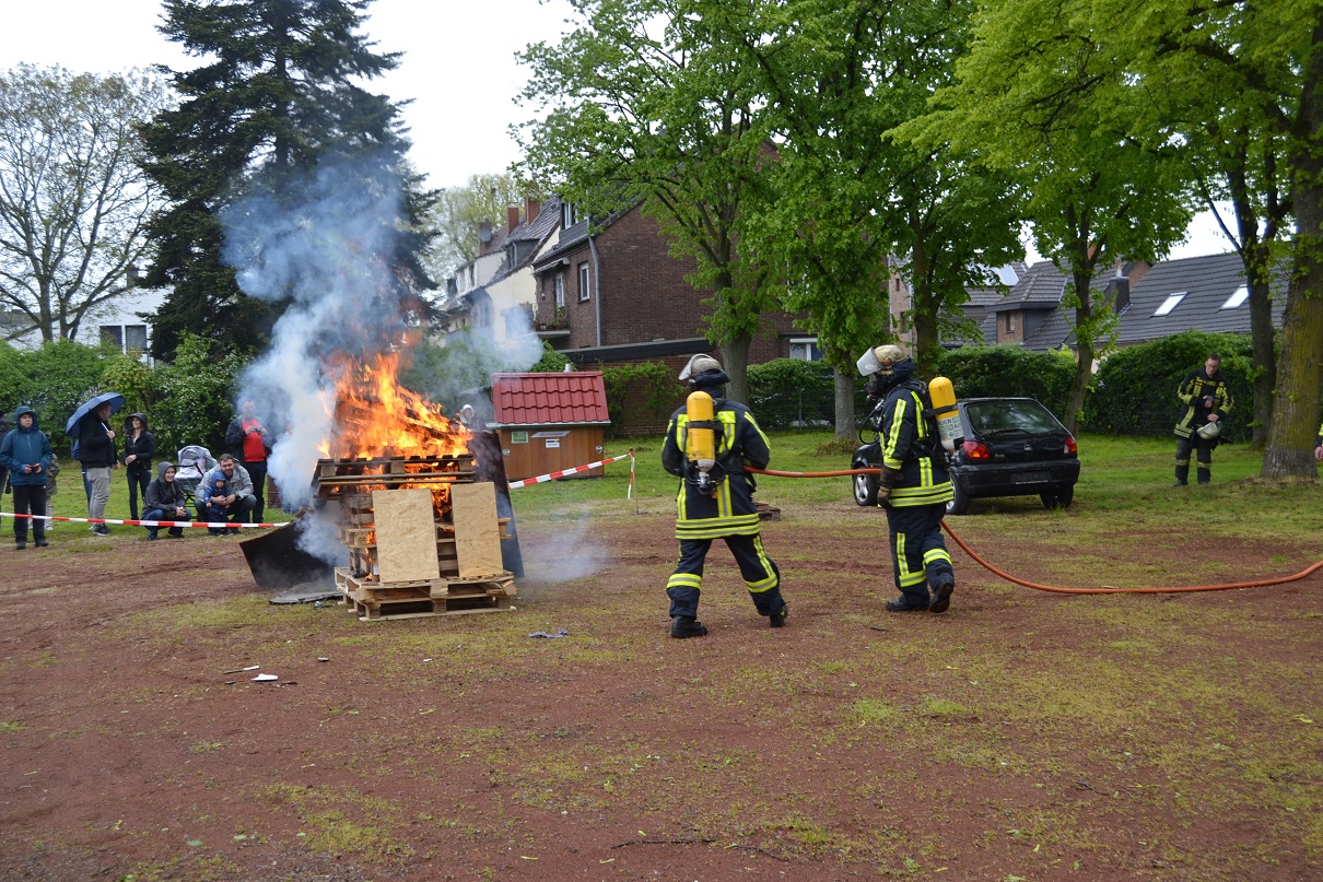 Am Montag veranstaltete der Löschzug 750 sein traditionelles Maifest, doch das Wetter wurde für die Mitglieder in diesem Jahr eine Herausforderung. Schon am frühen Morgen des Maifeiertages setzte Dauerregen ein, der bis zum Abend anhalten sollte. Der Dauerregen erdorderte eine verstärkte Improvisation, trotzdem konnte das geplante Programm nicht wie vorgesehen umgesetzt werden. So fiel beispielsweise die Mitmach-Aktion dem Regenwetter zum Opfer, auch konnte die beliebte Hüpfburg nicht aufgebaut werden.