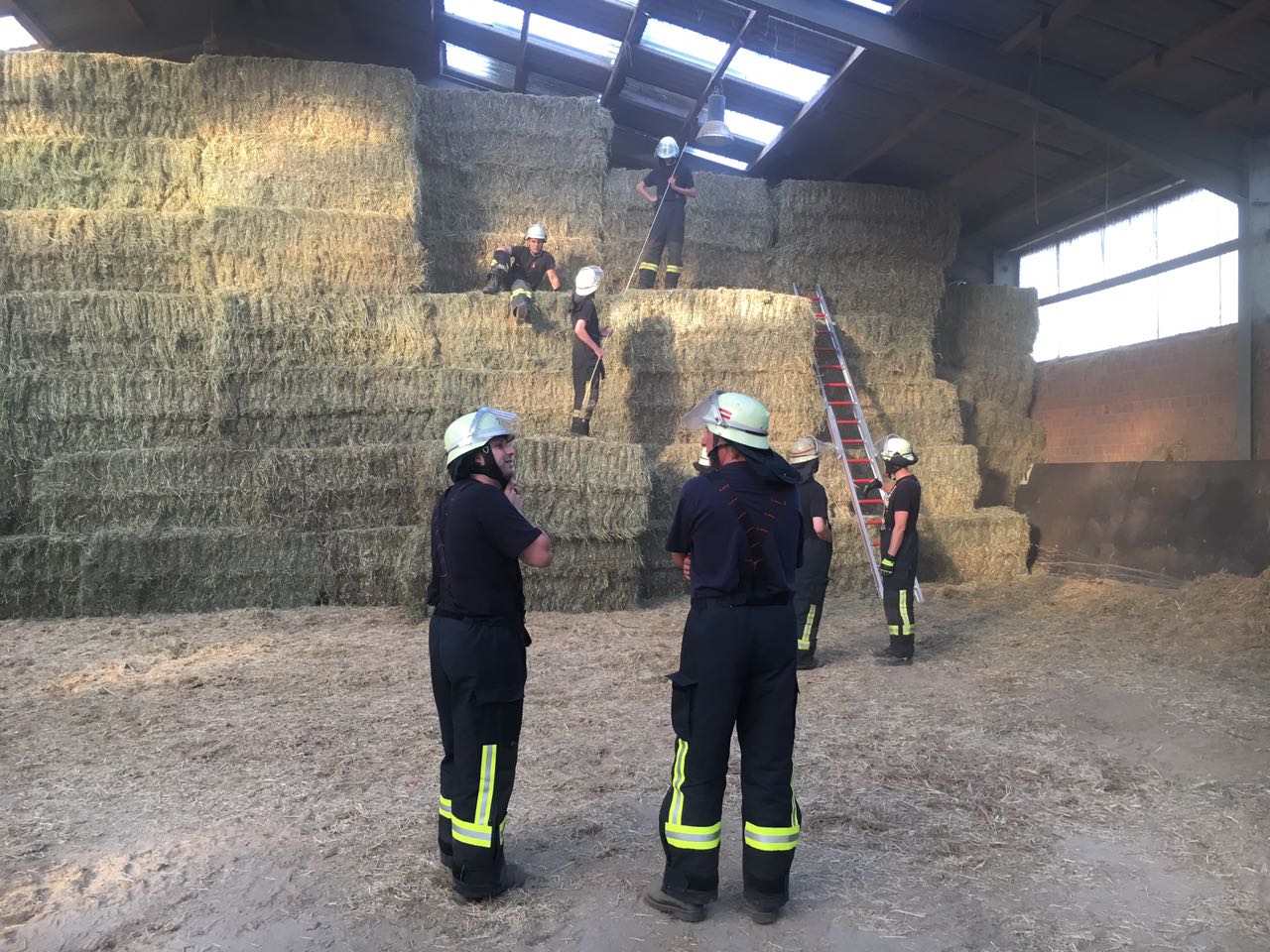 Während des gestrigen Dienstabends war der Löschzug 750 im Ortsteil Holtum und hat dort bei einem landwirtschaftlichen Betrieb eine Heumessung durchgeführt. Bei dieser jährlich im Frühsommer wiederkehrenden Tätigkeit wird an verschiedenen Stellen eine Messsonde in Heuballen gestochen und die Temperaturen im Inneren gemessen. Bei der Messung wurden an mehreren Stellen leicht erhöhe Werte registriert, sodass in der kommenden Woche eine weitere Kontrolle erfolgen wird. Einige Bilder der Heumeussung befinden sich am Ende des Artikels.