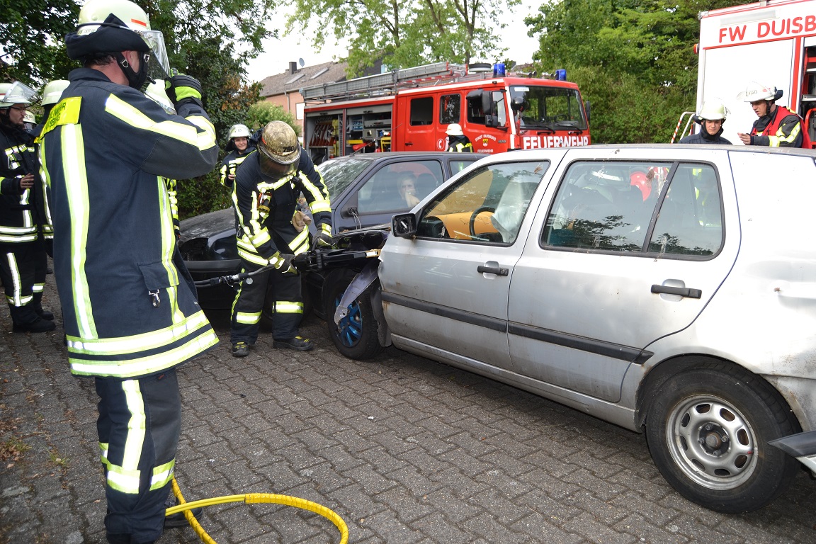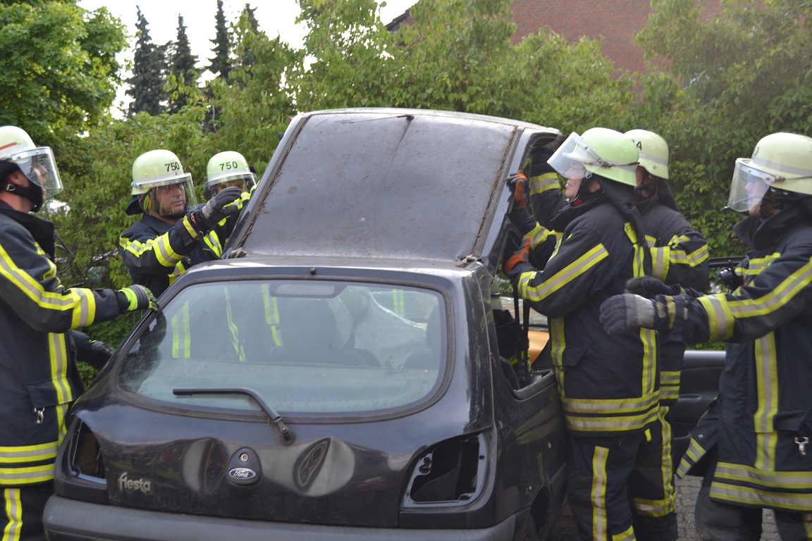 Beim simulierten Szenario handelte es sich um einen seitlichen Zusammenstoß zweier PKW, bei dem eine Person eingeklemmt und eine weitere in ihrem Fahrzeug eingeschlossen wurde. Da die eingeschlossene Fahrerin schwer verletzt wurde, musste eine sogenannte Crash-Rettung durchgeführt werden. Die zweite Person war dagegen nur leicht verletzt und wurde patientenorientiert aus ihrem Fahrzeug befreit. Während die Löschgruppe 201 die Verkehrsabsicherung und die Sicherstellung des Brandschutzes übernahm, führten die Einsatzkräfte des Löschzuges 750 die technische Rettung der beiden Personen durch.
