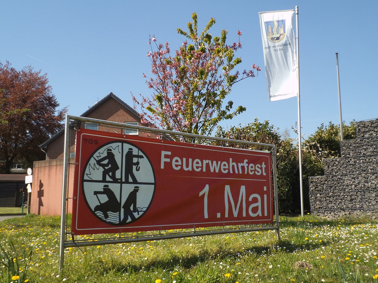 In großen Schritten rückt das diesjährige Maifest des Löschzuges näher! Seit einigen Tagen macht nun auch ein Banner Autofahrer am Ortseingang auf das Fest aufmerksam. Außerdem schmückt die Fahne des Löschzuges die Ortsmitte und weist so auf das 110-jährige Jubiläum hin. An dieser Stelle bedankt sich die Freiwillige Feuerwehr beim Bürgerverein Mündelheim, der dies mit seiner Unterstützung möglich gemacht hat!