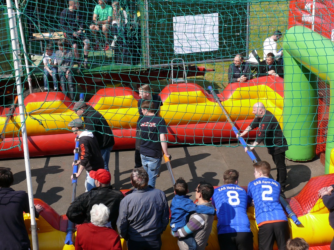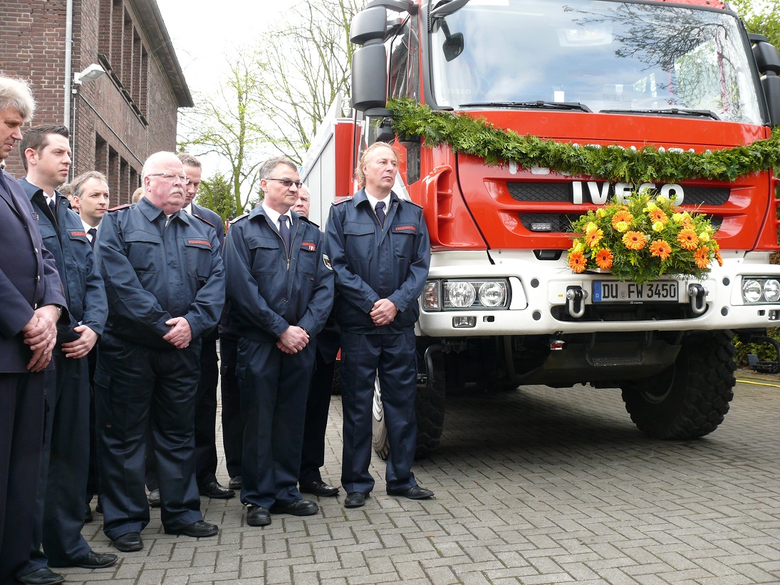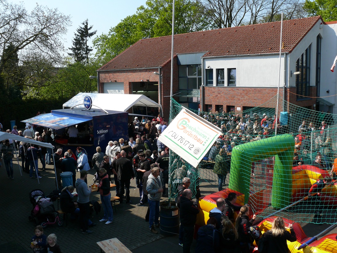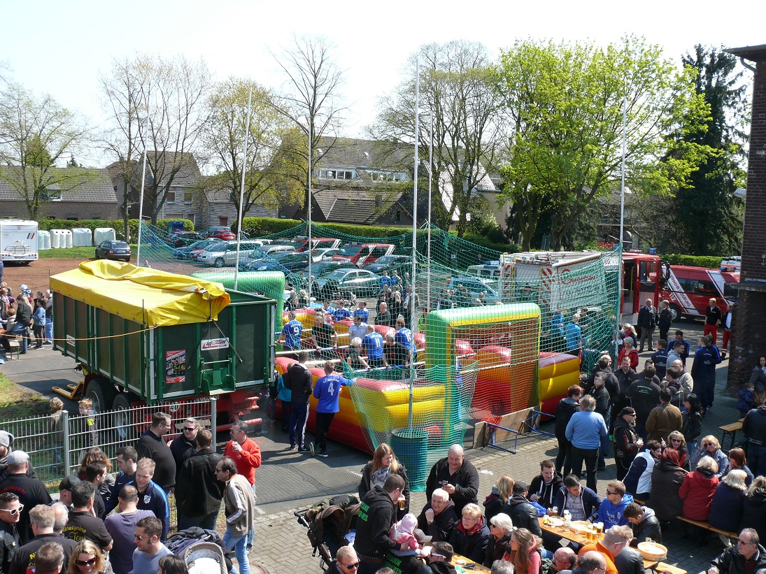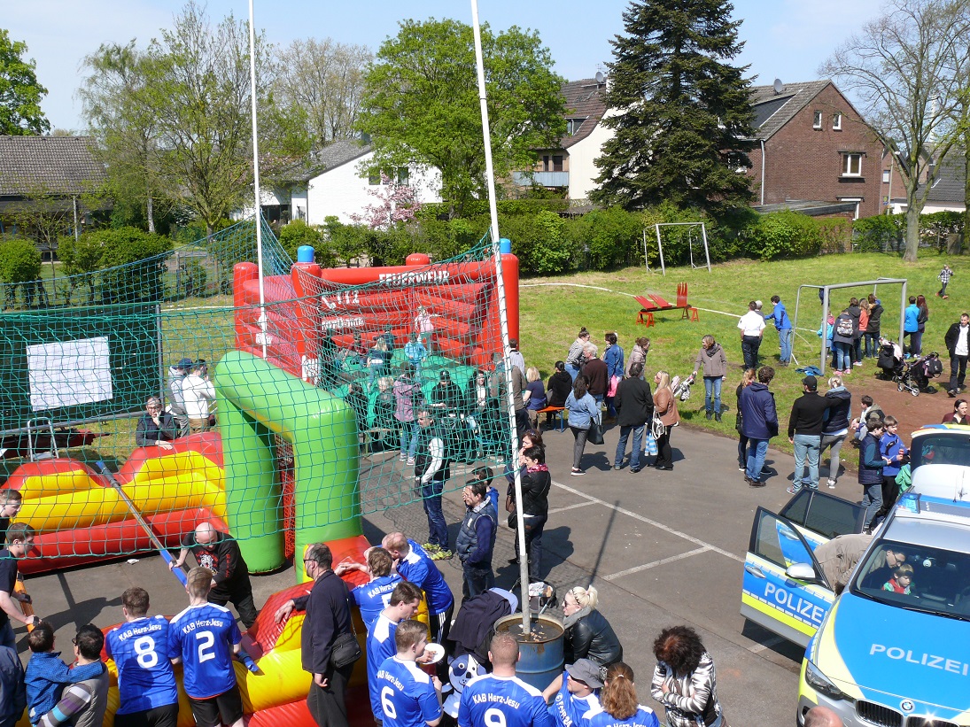 Für einen würdigen Auftakt des Festes sorgte die stimmungsvolle Floriansmesse im Gerätehaus samt Fahrzeugweihe, die von Pastor Rolf Schragmann und Pfarrer Rainer Kaspers sowie durch den Kirchenchor Melo-Dio gestaltet wurde. Anschließend durfte der Löschzug zahlreiche Besucher zum Tag der offenen Tür und zum inzwischen 7. Menschenkicker-Turnier, welches das Offizierscorps der Schützenbruderschaft Mündelheim-Ehingen gewann, begrüßen.