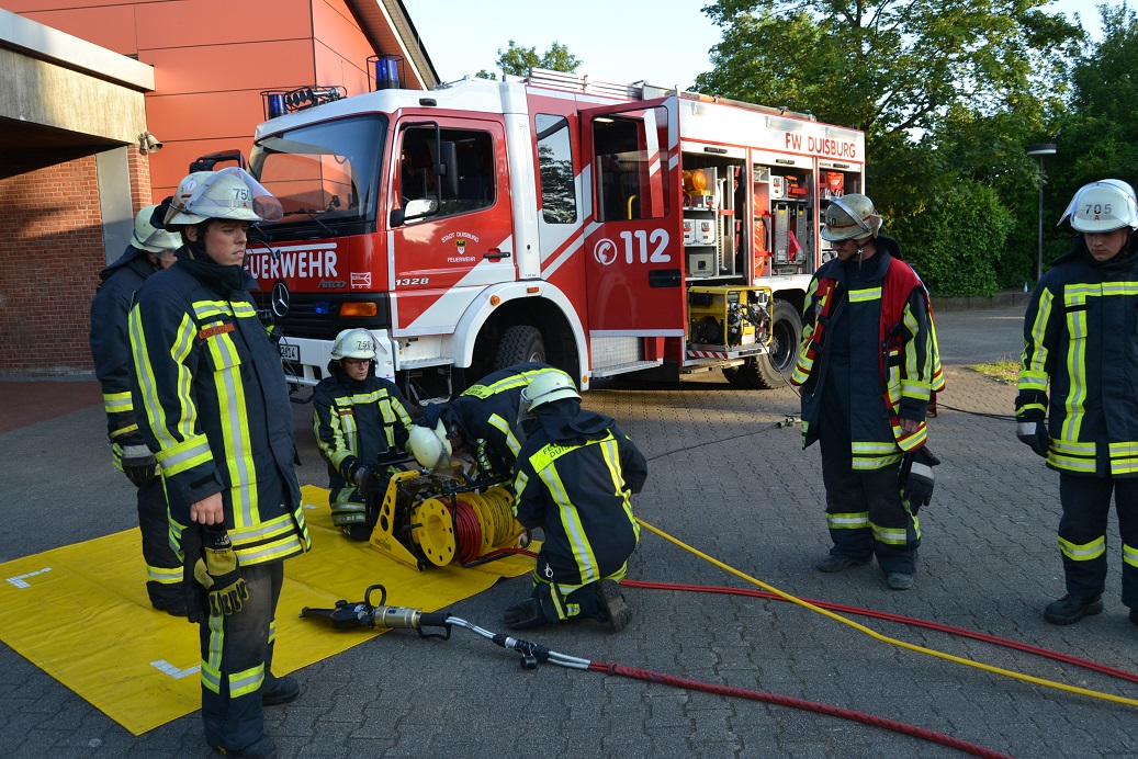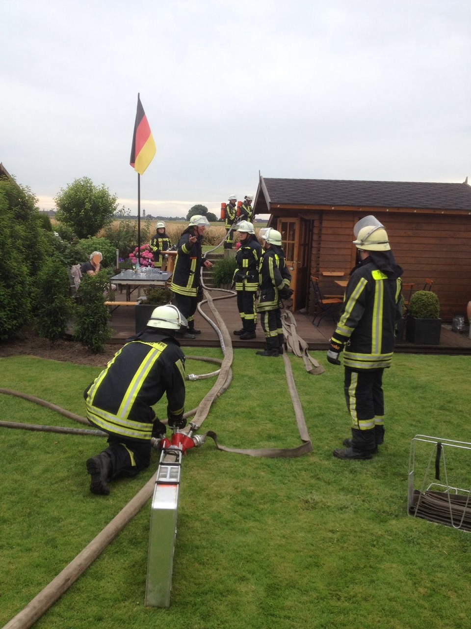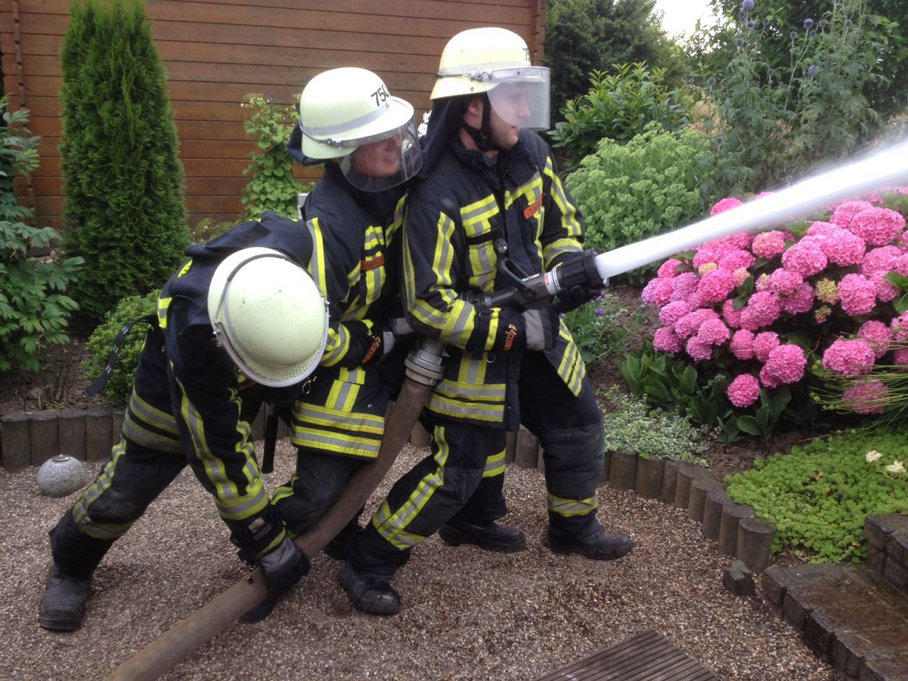 Aufgrund des hochsommerlichen Wetters entschloss sich der Löschzug dazu, in dieser Woche nur eine kleine Übung durchzuführen. Dennoch wurde trotz der hohen Temperaturen Wert darauf gelegt, das Geschick mit schweren Geräten und voller Montur zu trainieren. So wurde mit dem hydraulischen Rettungsgerät gearbeitet und dabei mittels Hydraulikspreizer Wasserbecher umgestapelt. Hierzu ein paar Eindrücke der gestrigen Übung: