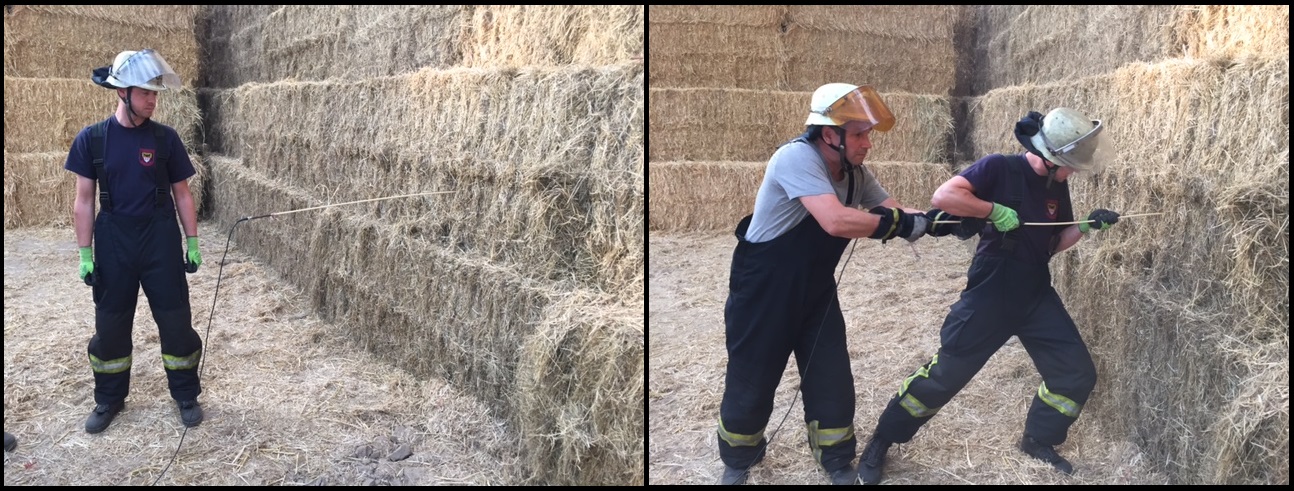 Um dieser vorzubeugen, kommt jedes Jahr im Frühsommer eine wiederkehrende Aufgabe auf die freiwillige Feuerwehr Mündelheim zu: die Heumessung. Hierbei wird an verschiedenen Stellen eine Messsonde in Heuballen gestochen und die Temperatur im Inneren gemessen. Werden dabei zu hohe Temperaturen festgestellt, werden die Heuballen entweder in den Folgetagen mehrfach kontrolliert oder unter Aufsicht der Feuerwehr aus der Lagerstätte gefahren.