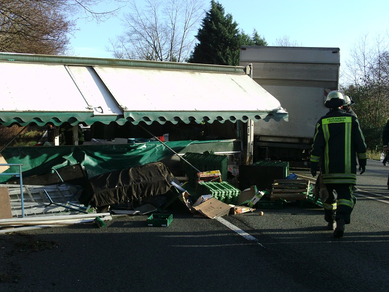 Rund zehn Stunden vor dem Jahreswechsel wurde der Löschzug Mündelheim gemeinsam mit Kräften der Berufsfeuerwehr und des Rettungsdienstes zu einem Hilfeleistungseinsatz auf die Bundesstraße 288 alarmiert. In Fahrtrichtung Krefeld war kurz hinter der Sermer Kreuzung ein Verkaufsanhänger umgestürzt. Dieser wurde zunächst aufgerichtet und anschließend die verlorene Ladung beiseite geräumt. Eine Person wurde durch den Rettungsdienst einem Krankenhaus zugeführt. Während der Bergungsmaßnahmen war die Bundesstraße zwischen Mündelheim und Huckingen voll gesperrt.