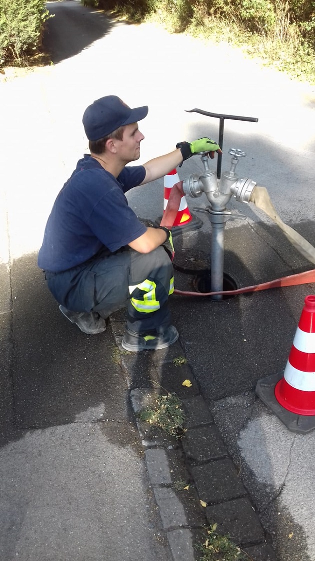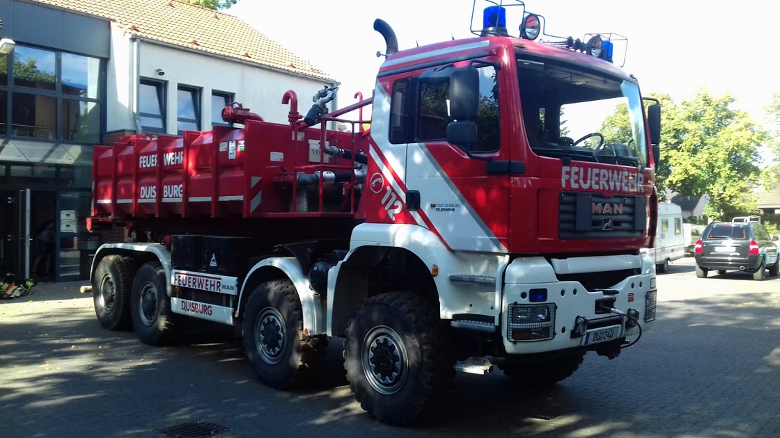 Aufgrund der anhaltenden Trockenperiode leistete der Löschzug 750 am Dienstagabend erneut Amtshilfe für das Umweltamt der Stadt Duisburg. Wie in der Vorwoche rückten die Einsatzkräfte zum Ehinger Wäldchen aus, um dort Jungbäume sowie frisch gepflanzte Sträucher und Sätzlinge großflächig zu bewässern. Im Einsatz waren beide Löschgruppenfahrzeuge des Löschzuges, darüber hinaus wurde ein Wechselladerfahrzeug mit einem 10.000 Liter Wasser fassenden Abrollbehälter besetzt. Zunächst wurde eine Wasserversorgung vom Ehinger Berg aus in Richtung Wäldchen aufgebaut, anschließend erfolgte die Bewässerung aus mehreren Rohren bzw. Wasserwerfern. Nach rund drei Stunden konnten die Einsatzkräfte des Löschzuges wieder an ihren Standort einrücken.