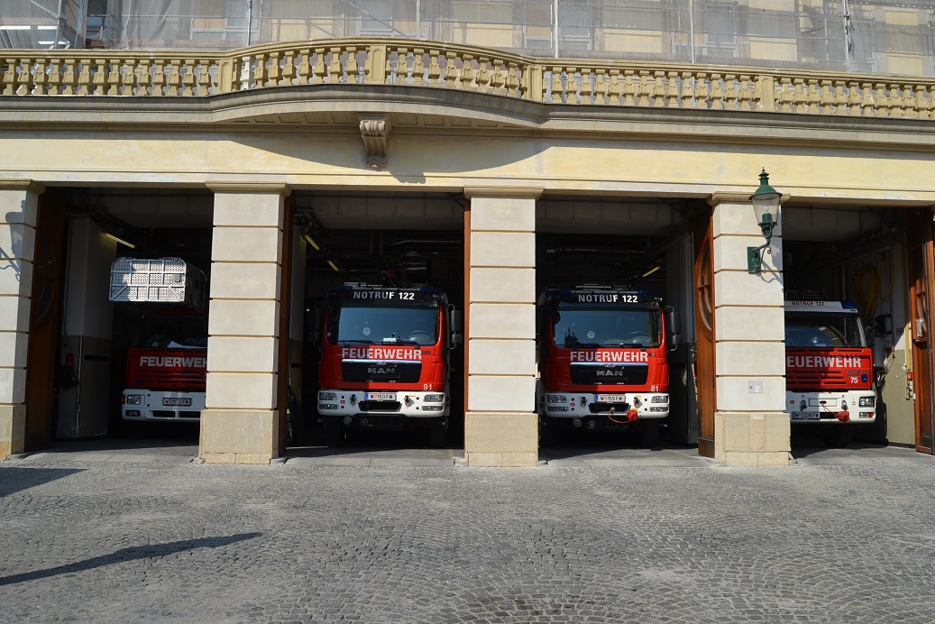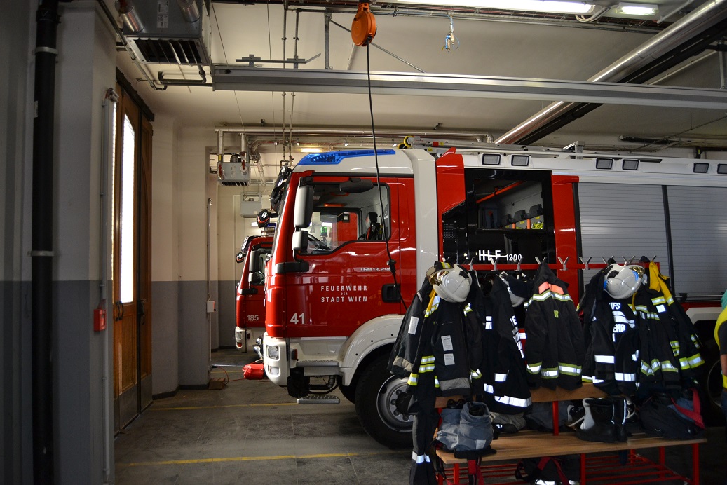 Allzu lange konnte die Reisegruppe das Wiener Nachtleben jedoch nicht genießen, denn schon für Samstagmorgen stand der nächste Programmpunkt auf dem Plan: Hierbei wurden die Zentrale Feuerwache der Berufsfeuerwehr Wien und das ihr angeschlossene Feuerwehrmuseum besichtigt. Zunächst erhielt die Duisburger Gruppe einen Einblick in die über 300-jährige Geschichte der Wiener Berufsfeuerwehr, die zu den ältesten Berufsfeuerwehren der Welt gehört. Im Anschluss wurde dann die Feuerwache besucht. Dabei bekamen die Kameraden den Fuhrpark gezeigt, dazu erhielten sie ausführliche Informationen zur Organisation der Feuerwehr Wien sowie zum einsatztaktischen Vorgehen.