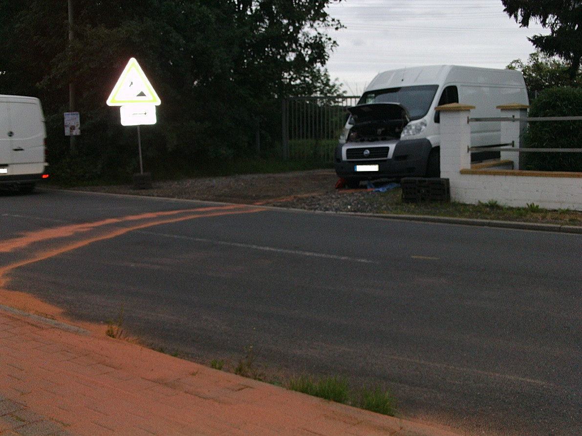 Am Freitagmorgen riss in Höhe der Kreuzung Krefelder Straße/Breitenkamp die Kraftstoffleitung eines Kleintransporters, der auf der Bundesstraße 288 in Fahrtrichtung Ratingen unterwegs war. Als Folge liefen Betriebsmittel aus, die sich vom Kreuzungsbereich bis in den Breitenkamp zogen, wo das Fahrzeug abgestellt wurde. Durch Kräfte des Löschzuges 750 wurde der Kraftstoff mit Bindemitteln abgestreut und die Einsatzstelle an die Polizei übergeben.