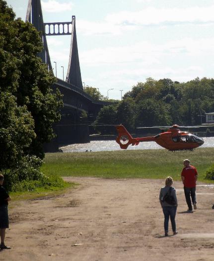 In Höhe der Rheinbrücke wurde der Feuerwehr eine Person im Rhein gemeldet. Der Strom wurde daraufhin von Einsatzkräften aus Duisburg und Krefeld abgesucht. An der Suche waren darüber hinaus zwei Mehrzweckboote, ein Polizeihubschrauber und der Rettungshubschrauber Christoph 9 beteiligt. Eine Person konnte jedoch nicht gefunden werden, so dass der Einsatz nach rund einer Stunde beendet werden konnte.
