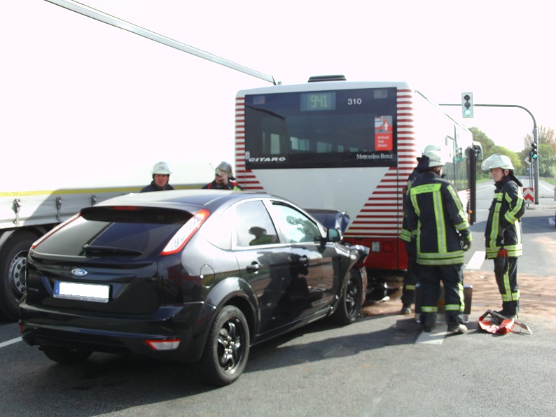 Am Freitagmorgen kam es auf der Bundesstraße 288 in Höhe der Deichbaustelle zu einem Auffahrunfall zwischen einem Linienbus und einem PKW, bei dem die Fahrerin des PKW leicht verletzt wurde. Infolge des Unfalls liefen größere Mengen Betriebsmittel aus, die von der Feuerwehr mit Bindemitteln abgestreut wurden. Des Weiteren wurde die Fahrzeugbatterie des PKW abgeklemmt.