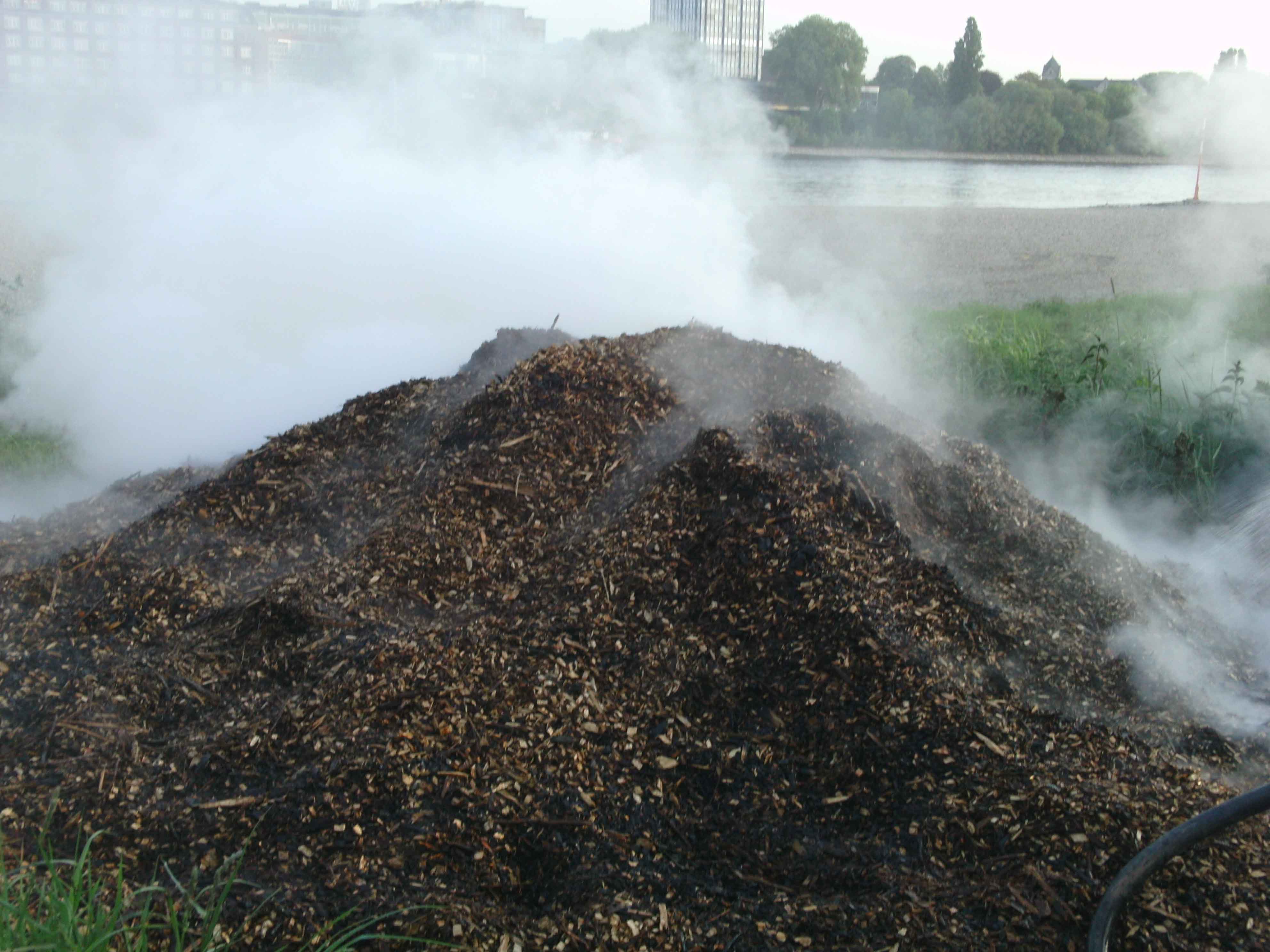 Nach einem Koksaustritt an einem Hochofen wurden die Wasserversorgung aufgebaut und Kühlungsmaßnahmen durchgeführt.
